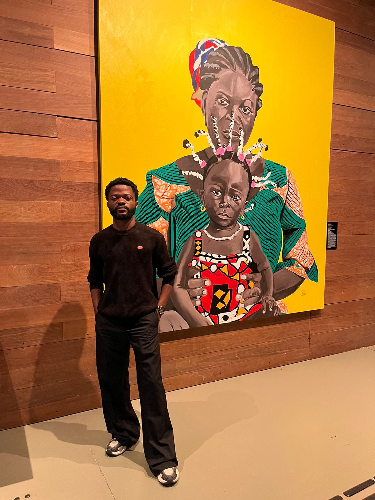 Com retratos potentes, o artista angolano transforma sua experiência de migração em força criativa no Brasil.